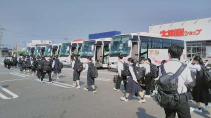 6月9日(水)8:30 各クラス順番にバスに乗り込み、見送ってくださった先生に手を振り、元気に出発しました。