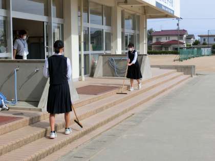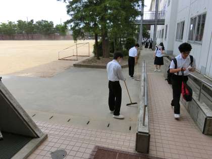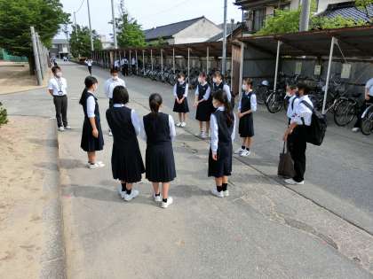 朝の委員会活動 公開日 2021/06/11 更新日 2021/06/11 生徒会 6月11日(金)8:00 朝早くから、美化員会は生徒玄関の清掃、生活委員会は自転車のカギかけの呼びかけを行っています。生活委員会は、終了ミーティングでカギかけの状況を確認しています。