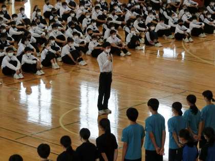 富山市中学校総合選手権大会壮行会1 公開日 2021/06/16 更新日 2021/06/16 生徒会 6月16日(水)6限 18日金曜日から始まる、富山市総合選手権大会の壮行会を行いました。生徒会執行部の代表生徒が、選手全体に激励の言葉を伝えると、各部の部長が力強く抱負を述べました。 上:執行部代表挨拶 中:陸上競技部 下:野球部