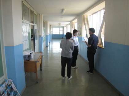 1年生 授業風景 公開日 2021/06/28 更新日 2021/06/28 1学年 6月28日(月)4限 上:1−1英語 廊下に一人ずつ出て、ALTとスピーチチェック! 中:1−2技術 下:1−3体育