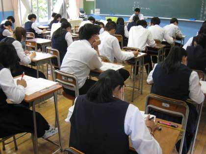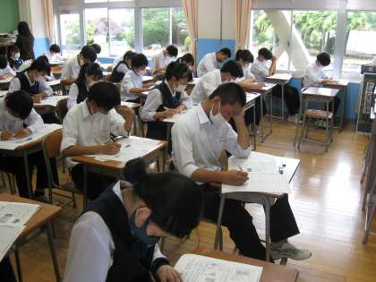 1限目は社会でした。進路に関わる大切なテストに向けて、一生懸命取り組んでいました。