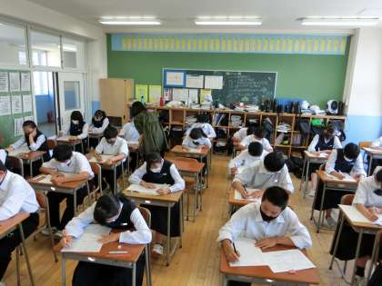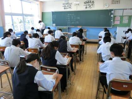 2限、2年生の保健体育のテストの様子です。