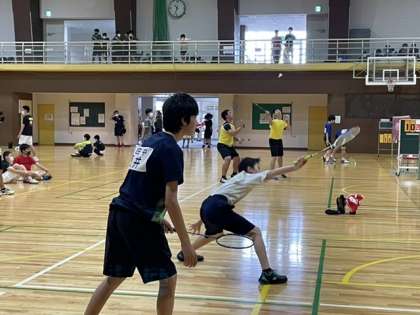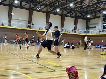 男子バドミントン部 公開日 2021/07/05 更新日 2021/07/05 部活動 7月3日 市民体育大会の様子です。全員が正々堂々と試合に臨んでいました。シングルスでは、ベスト4の結果を残せました。 試合だけでなく、審判や片付けもしっかりと取り組む姿は素晴らしかったです。
