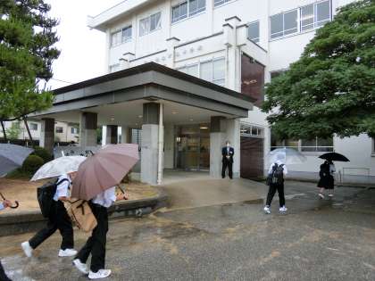 朝の登校風景1 公開日 2021/07/06 更新日 2021/07/06 そ の 他 7月6日(火)8:00 今朝も雨です。涼しく感じられます。今日はATの時間に人権作文の読み聞かせ、6限目に2年生の校外学習結団式を行います。