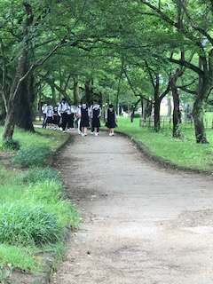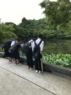 班別学習 高岡古城公園です。雨が上がり、さわやかな空気の中、活動を始めました。