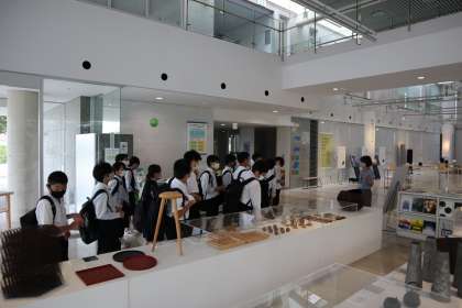 2学年 校外学習 2組 公開日 2021/07/07 更新日 2021/07/07 2学年 2組は能作と合わせて、高岡市デザイン・工芸センターに来ました。 デザイン・工芸センターは国内で見ても行政がデザイン工芸を支援している数少ない施設で、高岡市や富山県がデザイン工芸に力を入れているのが分かります。 ここには工芸都市高岡クラフトコンペの歴代のグランプリ作品が展示されており、生徒たちは興味深く見学していました。 この後、2組は3時に能作を出発し学校への帰路に着きます。