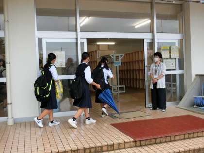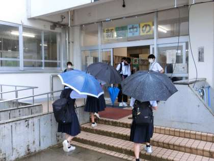朝の登校風景 公開日 2021/07/09 更新日 2021/07/09 そ の 他 7月9日(金)8:00 連日雨の朝です。今日は1限目にこれまで取り組んできた人権学習のまとめを兼ねて、各自の考える人権について作文に記述します。