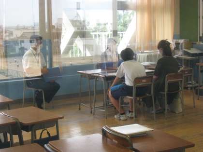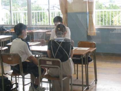 2年生 保護者懇談会1日目 公開日 2021/07/14 更新日 2021/07/14 2学年 7月14日(水) 1学期も終盤にさしかかり、保護者の方々をお迎えしての三者面談を行っています。短い時間ではありますが、学校生活やお家での様子についてお話しさせていただき、今後の指導につなげていきたいと思います。 上:2−1 中:2−2 下:2−3