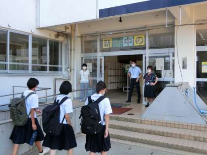 朝の登校風景1 公開日 2021/07/21 更新日 2021/07/21 そ の 他 7月21日(水)8:00 長いようで、あっという間に感じた1学期でしたが、今日が終業式。生徒は笑顔で元気に登校しています。