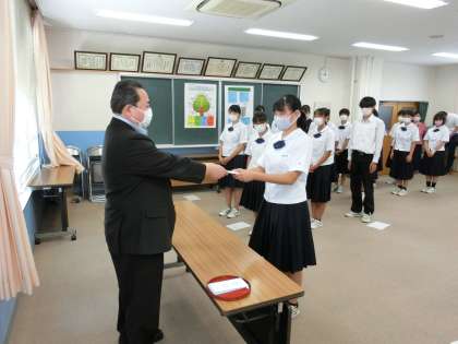 激励会1 公開日 2021/07/21 更新日 2021/07/21 そ の 他 7月21日(水)11:50 放課後、北信越大会や全国大会に出場する選手が会議室と校長室に集まり、激励会を行いました。出場選手それぞれが抱負を述べた後、本校の後援会、PTAから激励費が贈られ、校長が激励の言葉を伝えました。