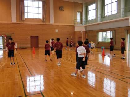 午後の部活動 公開日 2021/07/27 更新日 2021/07/27 部活動 7月27日(火)13:30 午後の部活動の様子です。体育館では、男子ハンドボール部がパスワークとディフェンス練習を行っていました。