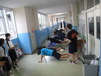 雨模様の日になりました。外の運動部は中で活動しました。文芸部は、調理実習を行いました。手際よく作業を進めていました。