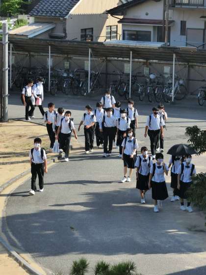 朝の登校風景1 公開日 2021/08/27 更新日 2021/08/27 そ の 他 8月27日(金)7:55 夏休みが終わり、2学期が始まりました。さわやかな風が吹く快晴の朝、生徒が元気に登校しています。
