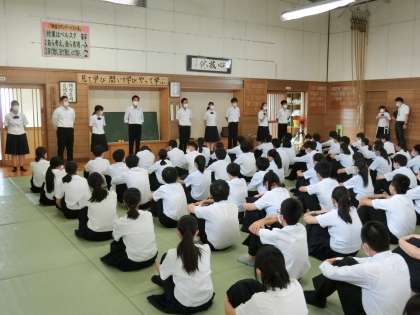 2学期最初の学年集会を行いました。生活態度や進路に向けた話に真剣に耳を傾ける生徒たちの姿がありました。