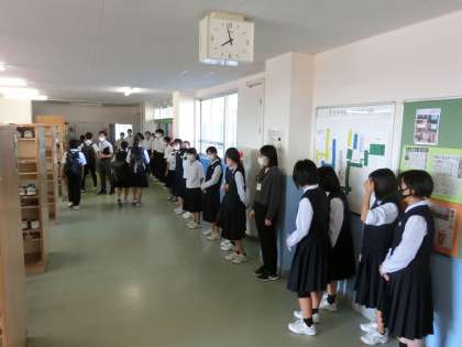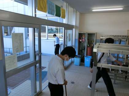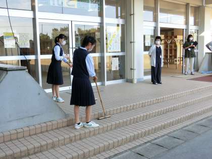 9月10日〔金) 朝の生徒会活動 公開日 2021/09/10 更新日 2021/09/10 生徒会 生徒玄関では、今朝もグッドモーニングウィーク(有志による挨拶運動)に参加する生徒の元気な挨拶の声が響いていました。また、生徒が気持ちよく登校できるようにと、美化委員会が今日も生徒玄関の朝清掃に取り組んでくれました。 新庄中学校では、生徒の自主的な活動がたくさん行われています。