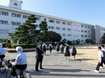 今日もさわやかな快晴の朝になりました。今日は3年生の実力テストが行われます。また、2学期始業式から教育実習を行ってきた実習生のうち、2名が最終日となりました。