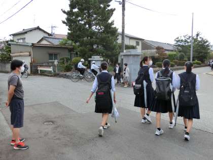 朝の登校風景 公開日 2021/09/17 更新日 2021/09/17 そ の 他 9月17日(金)8:00 薄曇りの少し蒸し暑く感じる朝になりました。今日は3年生の実力テスト、放課後に合唱コンクール実行委員会が行われます。