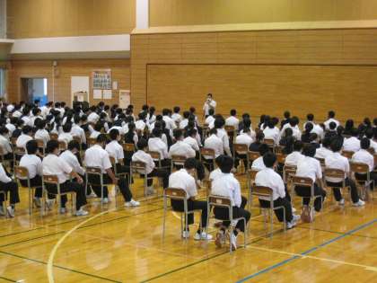 2年 学年集会 公開日 2021/09/17 更新日 2021/09/17 2学年 9月17日(金) 6限 2学年で、「14歳の挑戦」に向けて(キャリア講座含む)、日々の生活を振り返ったり、ルールを確認する学年集会を行いました。みんな真剣に先生の話を聞いていました。
