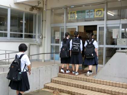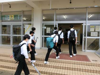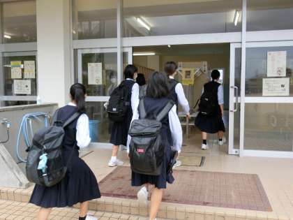 雨が降ったりやんだり、ぐずついた朝になりました。今日は教育実習生2名の研究授業が行われます。
