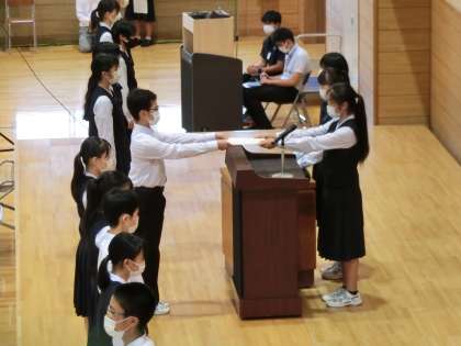 続いて生徒会長から、後期生徒会執行委員と専門委員長に任命書が授与されました。