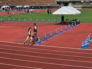 女子2区は12位でタスキを繋いでいます! 走れ新庄中学校!