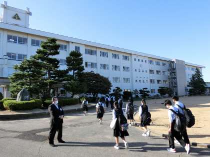 朝の登校風景 公開日 2021/10/04 更新日 2021/10/04 そ の 他 10月4日(月)8:00 快晴で、夏を思わせるやや暑く感じる朝になりました。今日は放課後に合唱コンクールの練習と教育相談が行われます。