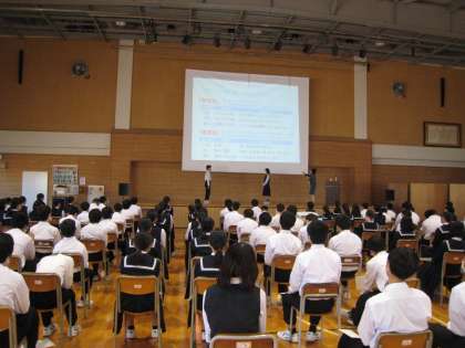 2学年で「社会に学ぶ『14歳の挑戦』」に向けて、講師の方をお招きし、挨拶や礼儀について学ぶマナーアップ講座を行いました。これから事業所訪問や本番に向けて、大変貴重なお話を聞くことができました。