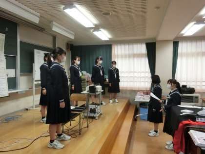 合唱コンクールの練習1 公開日 2021/10/20 更新日 2021/10/20 学校行事 10月20日(水)14:30 合唱コンクールまであと3日となりました。どのクラスもリーダーはもちろん、担任の先生も一緒になって最優秀賞を目指して一生懸命に練習に励んでいます。クラスによっては、兄弟学級で交流練習をしたり、昨日のリハーサルを分析したり、パート毎に苦手なところを集中して取り組んだりするなど、工夫しています。