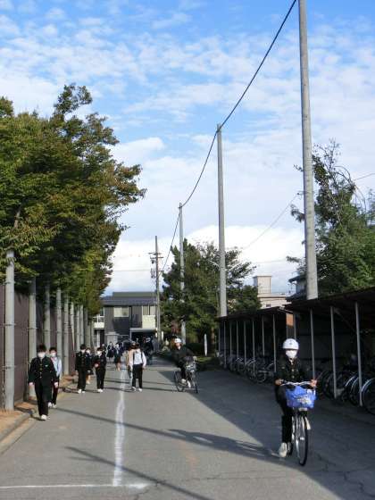 朝の登校風景 公開日 2021/10/22 更新日 2021/10/22 そ の 他 10月22日(金)8:00 日差しがまぶしいですが、今日も冷え込む朝です。今日は明日の学習発表会に向けて様々な準備やリハーサルが行われます。