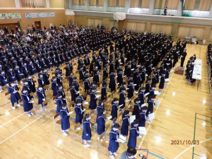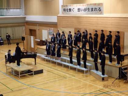 続いて、2年生の発表です。 上:2年生学年合唱 中:2−1 下:2−6