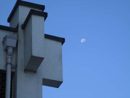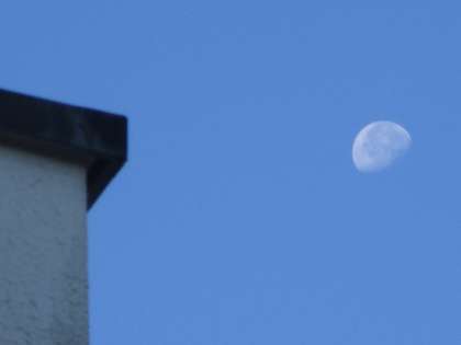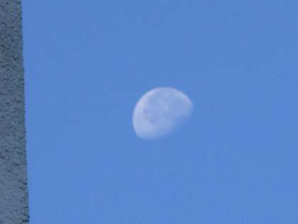 校舎の陰と同じ向きに月の陰があり、月も太陽の光に照らされているのを実感します。