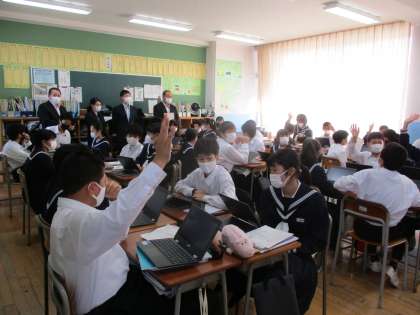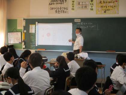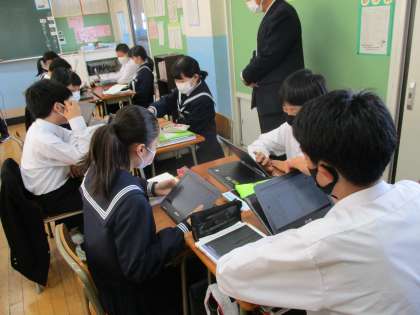 1人1台端末(クロームブック)のジャムボード機能を利用して、デンプンやショ糖やコーヒーシュガー等を水に入れた後の粒の大きさについて班で考察しました。