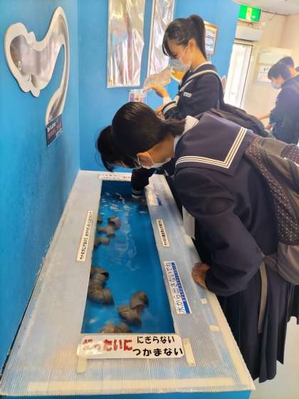 1組と3組です。松島水族館です。かわいい動物と触れ合っています。