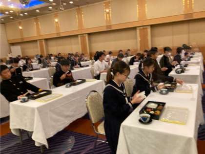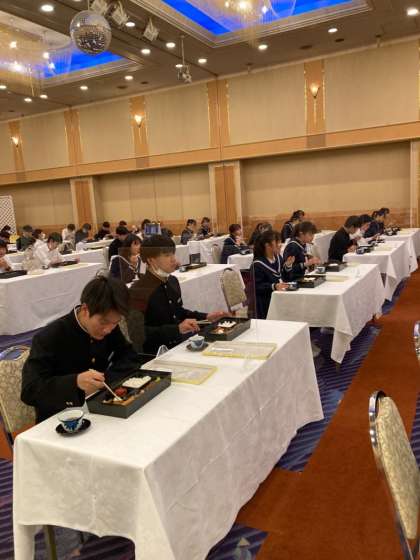 3年 修学旅行代替行事(1、3組) 公開日 2021/11/01 更新日 2021/11/01 3学年 1、3組は福井市内のホテルに到着し、昼食です。 感染対策に気を付け、黙食を心掛けてます。 みんな元気に食事をしています。