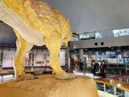 本日最後の見学地は恐竜博物館です。 迫力の展示に見入っていました。