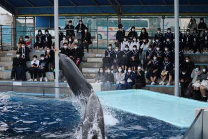 3年 修学旅行代替行事(2、4、5組) 公開日 2021/11/01 更新日 2021/11/01 3学年 2、4、5組です。 松島水族館でイルカショーを観ました。 イルカ達の圧巻のパフォーマンスに大きな拍手が起こっていました。