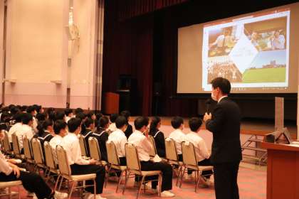 情熱あふれる語りかけで、生徒達はその熱意に引き込まれるように真剣な表情で聞いていました。