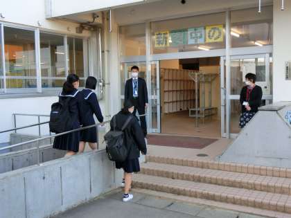 朝の登校風景 公開日 2021/11/04 更新日 2021/11/04 そ の 他 11月4日(木)8:00 放射冷却で、快晴のいい天気でありながら冷え込む朝になりました。今日から中教研学力調査が行われます。1日目の今日は、国語、理科、英語の3教科です。