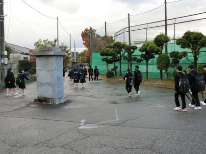 朝の登校風景 公開日 2021/11/05 更新日 2021/11/05 そ の 他 11月5日(金)8:00 雨が上がり、穏やかな朝です。今日は中教研学力調査2日目で、社会と数学の調査が行われます。午後は生徒総会が行われます。