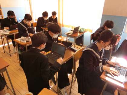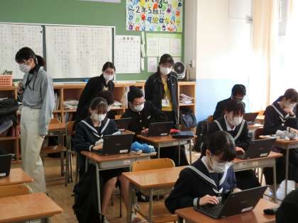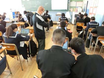 互見授業週間2 公開日 2021/11/19 更新日 2021/11/19 そ の 他 11月19日(金)3限 続いての互見授業は、3限目の2年生理科の授業です。テスト直前の授業で、テスト対策の復習問題をクロームブックで取り組むという授業を見て頂きました。正解しないと「○」と表示されないため、生徒は何とか正解しようと、お互いに教え合いながら能動的に積極的に取り組んでいました。
