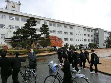 とても寒い朝になりました。今日から3日間、期末評価を実施します。生徒は、いつもより少し余裕をもって早めに登校しています。