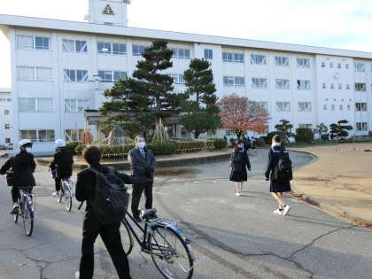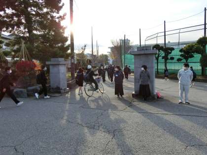 朝の登校風景 公開日 2021/11/29 更新日 2021/11/29 そ の 他 11月29日(月)8:00 とても冷え込む朝です。防寒着を着用して登校する生徒が増えています。週明けの寒い日ですが、生徒は元気に登校しています。