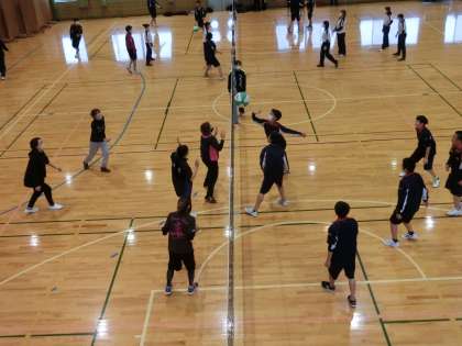 決勝トーナメントでは、生徒チーム、パパさんチーム、ママさんチーム、先生チームが激しい戦いとなり、会場は大いに盛り上がりました。1点を争う決勝戦は、生徒チームが優勝しました。