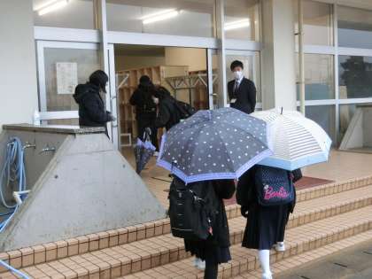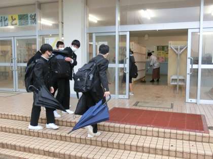 朝の登校風景 公開日 2021/12/07 更新日 2021/12/07 そ の 他 12月7日(火)8:00 昨日より少し暖かく感じるものの、今朝も雨です。今週の人権週間にちなんで、1・2年生は今日の道徳の時間に人権学習を行います。