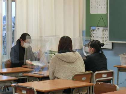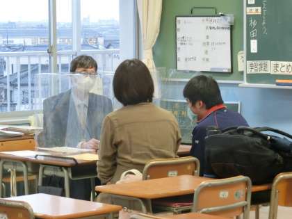 保護者懇談会 1 公開日 2021/12/17 更新日 2021/12/17 学校行事 12月17日(金) 午後 保護者懇談会3日目です。長かった2学期を振り返りながら、今学期に頑張ったことやこれからさらに努力したいこと等について確認していました。