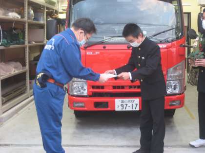 富山市消防団富山方面団新庄分団へ門松を届けてきました。