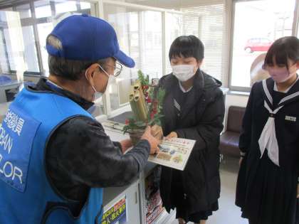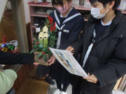 地域への感謝を伝える機会3 公開日 2021/12/22 更新日 2021/12/22 学校行事 本日も地域の施設に門松の贈呈を行いました。 日頃からの感謝の気持ちで門松を届け、地域の方へのつながりを感じられるとてもよい機会になりました。