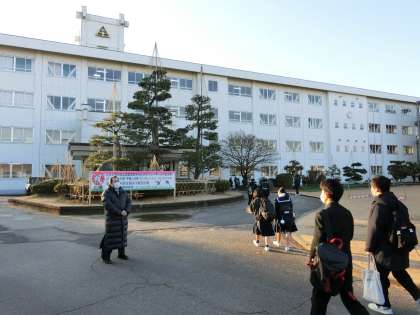 朝の登校風景1 公開日 2021/12/23 更新日 2021/12/23 そ の 他 12月23日(木)8:00 路面の水たまりが凍結する、冷え込みの厳しい朝になりました。今日は放課後、先週作製した門松を新庄北小学校区等にお届けに訪問します。