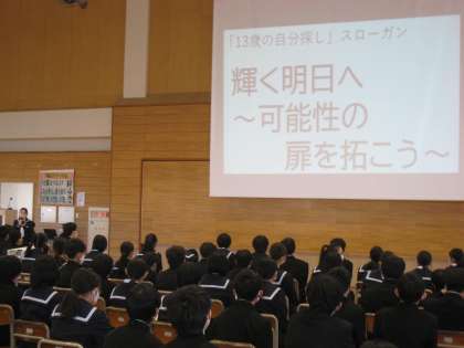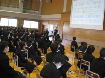 1年生 学年集会 公開日 2021/12/23 更新日 2021/12/23 1学年 12月23日(木) 2限 2学期の締めくくりに、学年集会を行いました。 学級代表が2学期を振り返っての感想と、新学期に向けた思いを述べてくれました。