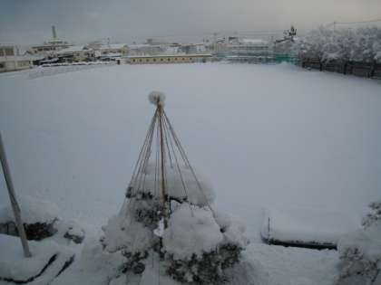本日8時の朝の様子です。雪は降っていませんが、辺りは銀世界です。